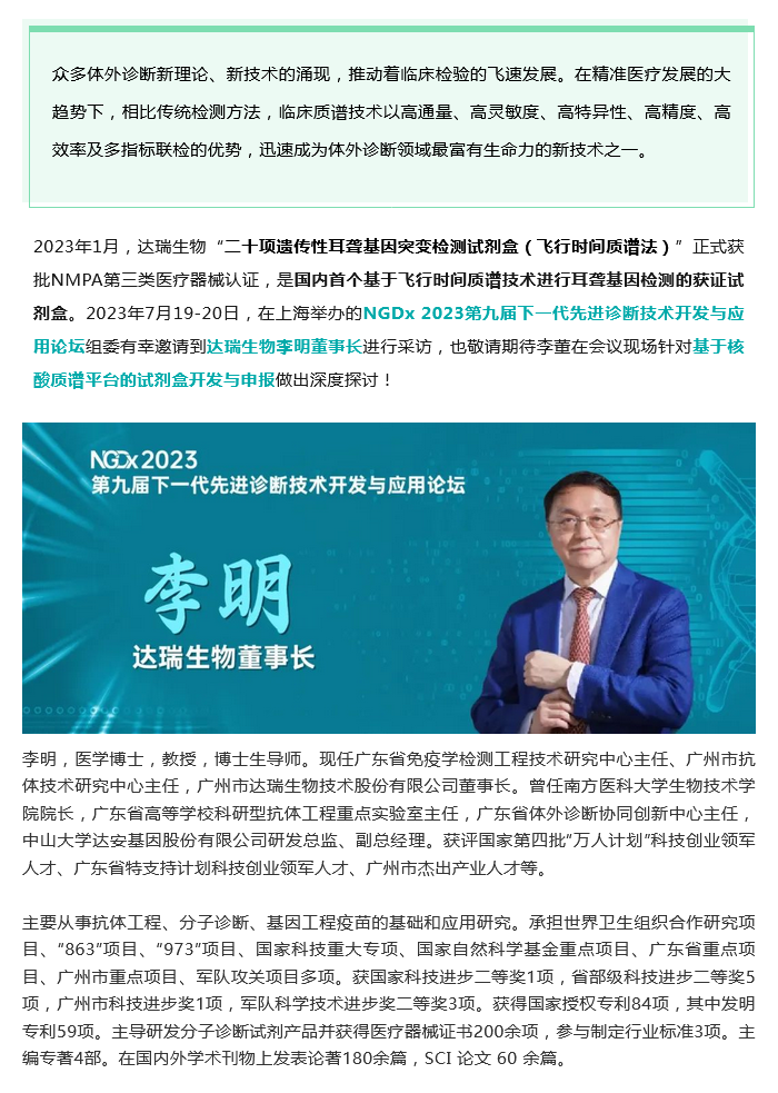NGDx專(zhuān)訪|達(dá)瑞生物李明教授:聚焦優(yōu)生優(yōu)育領(lǐng)域,依托質(zhì)譜技術(shù)助力人類(lèi)健康事業(yè)