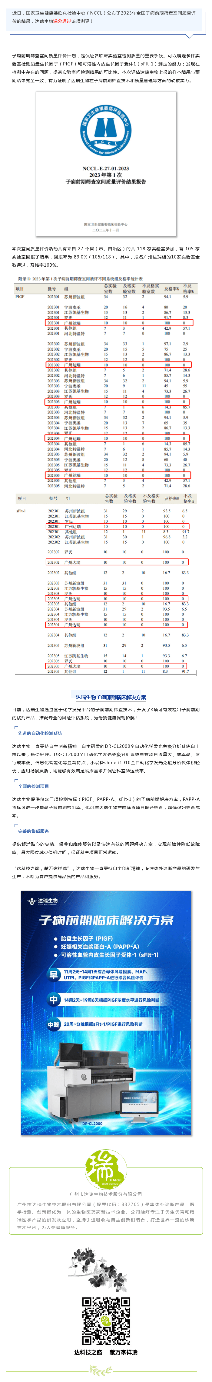 滿分!達(dá)瑞生物通過(guò)2023年全國(guó)子癇前期篩查室間質(zhì)評(píng)
