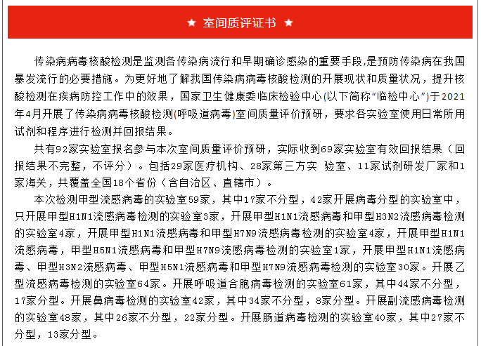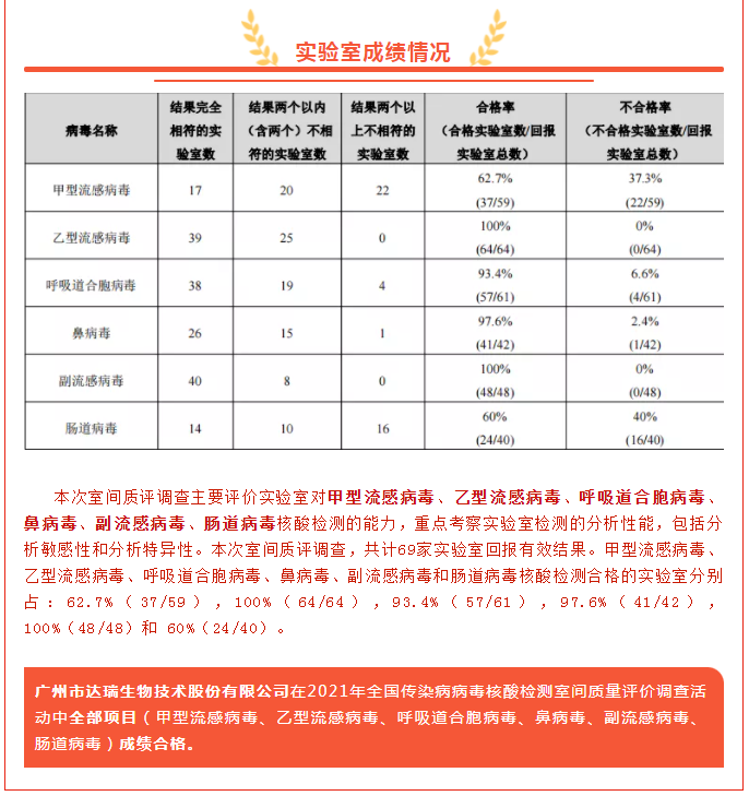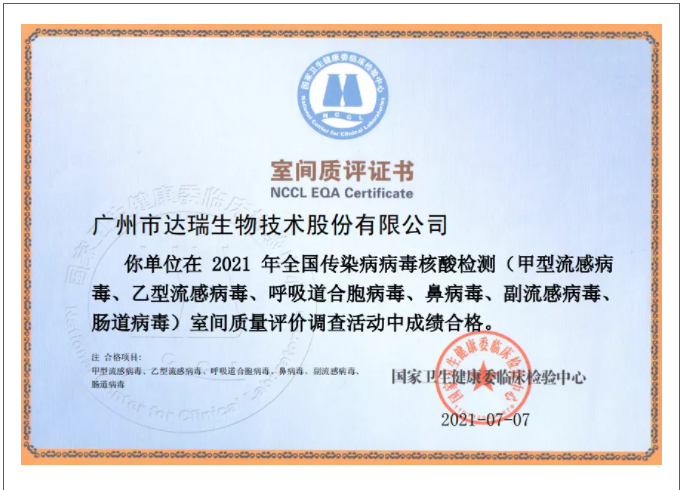 喜訊|廣州市達瑞生物技術股份有限公司在2021年全國傳染病病毒核酸檢測室間質量評價調(diào)查活動中全部項目成績合格