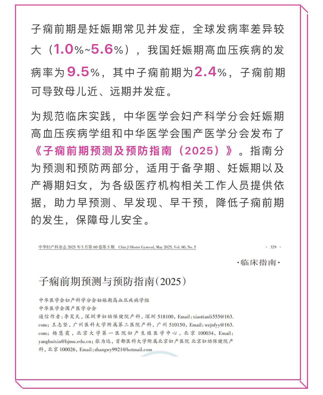 指南速遞|子癇前期預(yù)測(cè)及預(yù)防指南(2025)解讀
